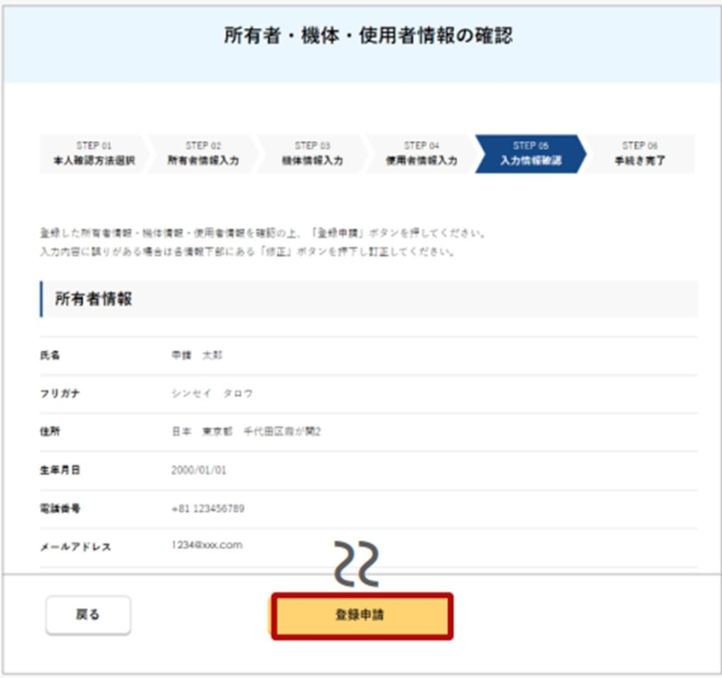 内容に間違いがなければ「登録申請」ボタンを押して申請を送信!